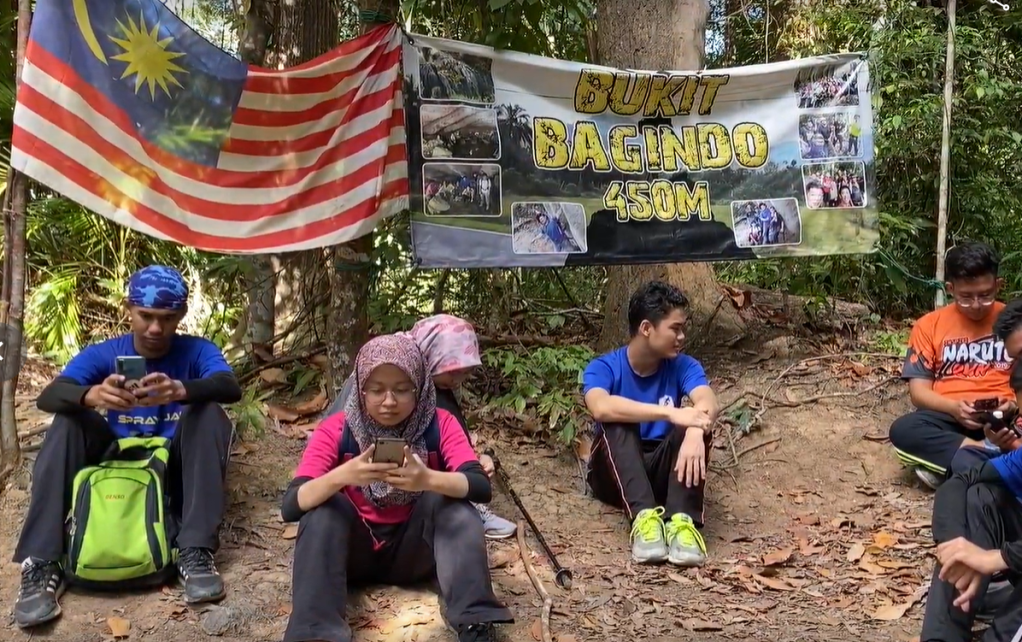 CP-8 merupakan puncak Bukit Baginda. Di puncak ini cuma ada banner dan bendera Malaysia. Tiada pemandangan ‘awan karpet’ ataupun matahari terbit. Oleh sebab itu, kebanyakkan hikers akan mula mendaki bukit ini lewat iaitu pada jam 7:30 pagi – 8:30 pagi. Setelah penat mendaki, kami berehat di puncak sambil bermain ‘game focus’. Gambar di bawah menunjukkan generasi kini yang tidak boleh berpisah dengan telefon pintar masing-masing.