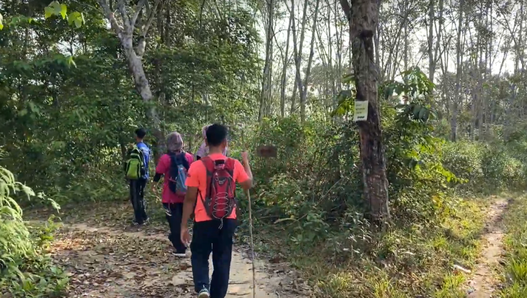 Terdapat lapan checkpoint untuk sampai ke puncak Bukit Baginda dan setiap checkpoint mempunyai petanda berwarna kuning. Daripada trailhead ke checkpoint 1 (CP-1), laluannya masih landai dan anda dikelilingi oleh pokok getah. Sekiranya anda nampak junction yang tiada tanda – terus sahaja. Jalan sehingga tiba di satu Y-Junction yang mempunyai tanda anak panah ke KIRI. Selepas masuk ke laluan tersebut, jalan terus sehingga tiba ke CP-1.