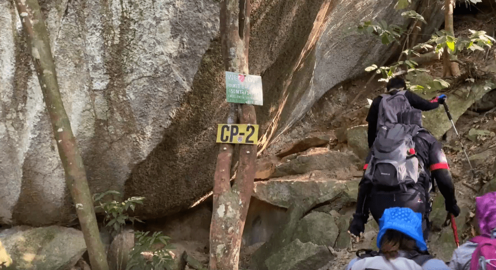 Setelah melepasi CP-1, maka bermulalah hiking yang sebenar. Laluan hutan yang mencanak sehingga ke puncak. Pastikan anda menyimpan tenaga secukupnya. Anda akan melepasi tujuh checkpoints sebelum tiba ke puncak. Jarak antara checkpoints tersebut tidaklah jauh. Anda boleh berehat di setiap checkpoint jika perlu kerana setiap checkpoint mempunyai petanda kuning kecuali CP-3. Saya tidak menjumpai CP-3.